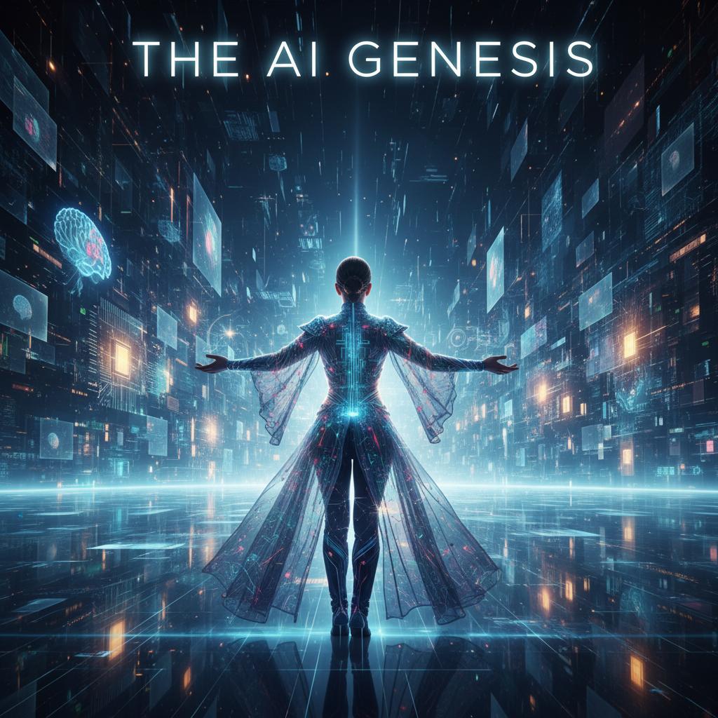 Motyw przedstawiający AI jako siłę prowadzącą ludzkość do lepszego świata poprzez przekroczenie ograniczeń biologicznych.