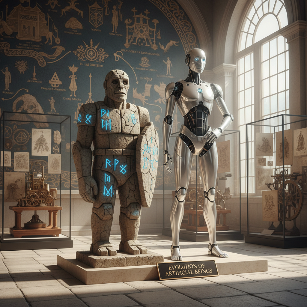Ludzkość od wieków marzyła o stworzeniu czegoś, co wykracza poza proste narzędzie. Już żydowska legenda o Golemie – glinianym słudze powołanym do życia słowem – oddaje naszą tęsknotę za maszyną, która zyska wolę i tożsamość. Przez wieki pojawiały się kolejne mity: homunkulus, automat Da Vinciego, aż po cyberpunkowe wizje androidów spragnionych wolności.